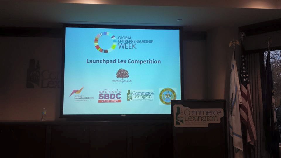 the afternoon, I was invited to participate as one of 3 judges at Commerce Lex & SBDC Launchpad Lex Competition. We heard 12 pitches from new startups looking to win the prize of professional video production and playing of the video at local gas station pumps. The winners were chosen by the judges’ scoring of each pitch according to how well the company would benefit from a video campaign. There were supposed to be three winners but there was a tie, so four winners were chosen: Caldo, Curbbed, Tinker Tech “Hillbarrow”, and SWORD.