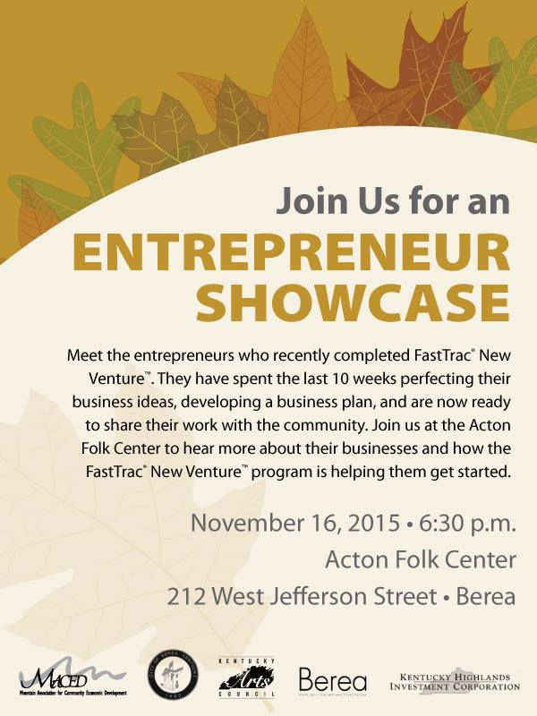 On Monday, November 16, 2015: the participants of the two FastTrac classes attended a graduation ceremony, Entrepreneur Showcase, where the students presented their wares as exhibitors, received a certificate and had refreshments. The Mayor of Berea, the Berea Tourism Director, MACED’s staff, and the Business Development Director of Berea spoke about the importance of supporting local entrepreneurship to improve economic development.